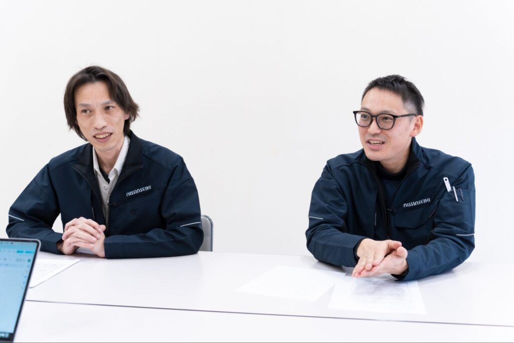Smart Craftの導入は、経営層の号令ではなく、現場で日々の課題に向き合っていた担当者の主体的な行動から始まりました。本章では、ツールの選定から導入・定着、そして不良率半減という成果に至るまでの軌跡を、浅井亮太様(生産技術部 係長、写真右)と野村和史様(製造部 製造3課2係 係長、写真左)に伺いました。