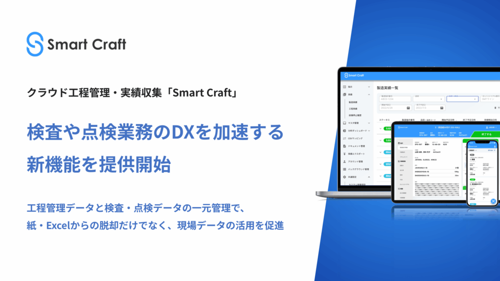 Smart Craft、検査や点検業務のDXを加速する新機能を提供開始 〜工程管理データと検査・点検データの一元管理で、紙・Excelからの脱却だけでなく、現場データの活用を促進〜